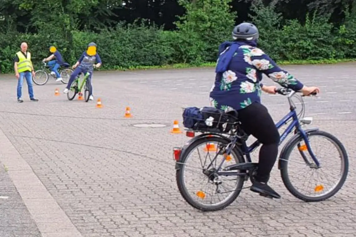 Buxtehude. Durch den Harsefelder Arbeitskreis Asyl und Integration wurde nach längerer Pause wieder eine coronakonforme Radfahrschulung für Zuwanderer organisiert. Ziel war es, den teilnehmenden Personen, welche nahezu alle zuvor noch nie oder nur sehr unsicher Fahrrad gefahren sind, genau dieses beizubringen. Die Schulung selbst wurde durch die Buxtehuder Verkehrswacht unter Leitung von Siegried Häußler und Frau Else Zager vom o.a. Arbeitskreis durchgeführt und beinhaltet insgesamt vier jeweils zweistündige Einheiten. In diesen werden den Teilnehmer:innen die Grundlagen des Fahrradfahrens in praktischer Form beigebracht. Ergänzend dazu erfolgt eine theoretische Beschulung.