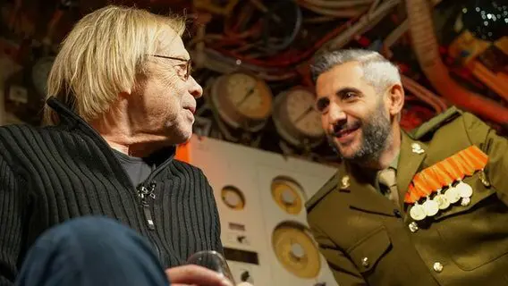 Michel Abdollahi empfängt den Schauspieler, Synchronsprecher und Sänger zu einer halben Stunde Talk zwischen Torpedos und Stahl. Es geht um die Lage der Nation und alles, was sonst noch wichtig ist: Warum ist die Gesellschaft rauer geworden? Was hat Volker Lechtenbrink als Hippie auf Ibiza getrieben? Und warum findet er es mutig, dass ihn seine mittlerweile fünfte Ehefrau überhaupt geheiratet hat?